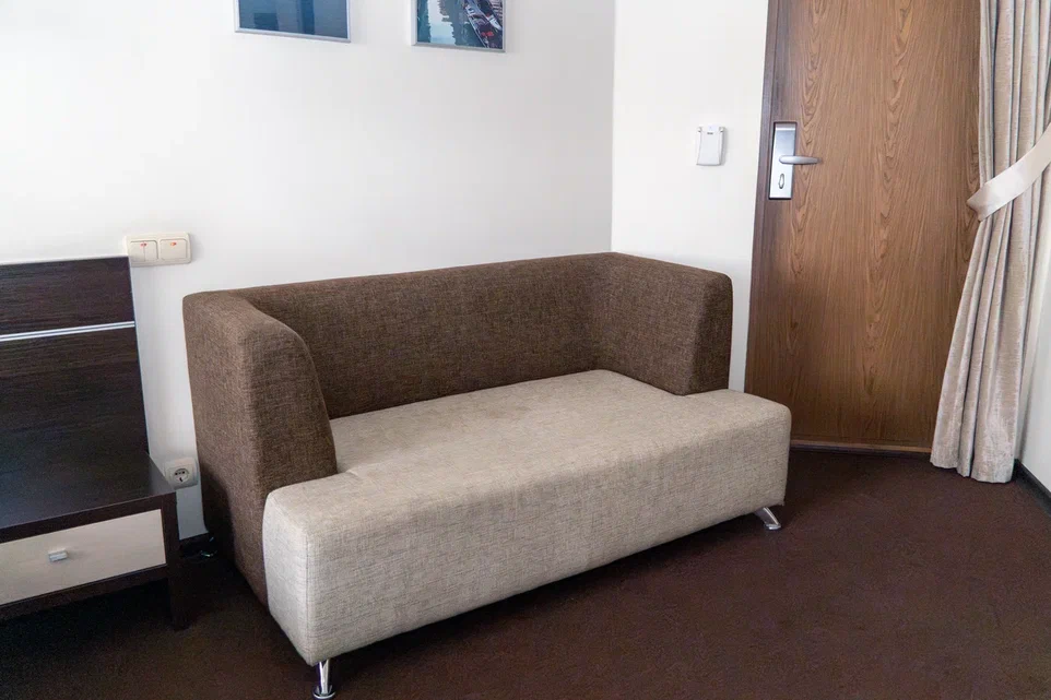 • Номер-стандарт с диваном (диван не раскладывается) - это идеальное сочетание умеренной стоимости проживания, полного пакета оборудования номера, отвечающего требованиям самых взыскательных деловых путешественников. Отличный вариант, как для одиночного проживания, так и совместного двух Гостей.