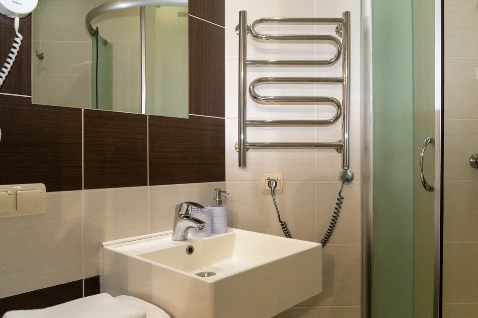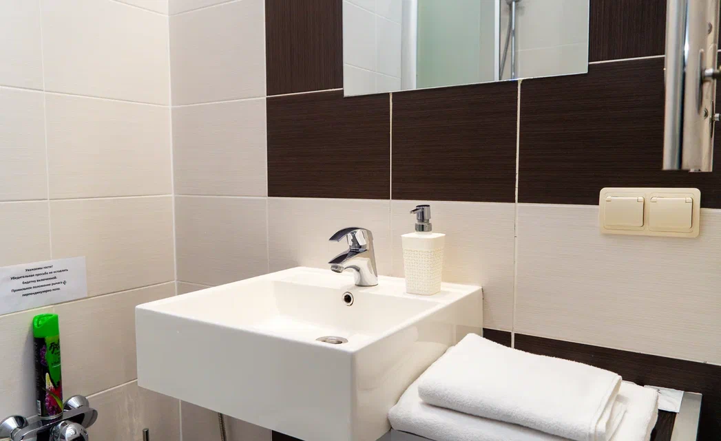 • Комплект белоснежных полотенец, уютного банного халата, и качественной парфюмерии подарят дополнительный комфорт Гостю.