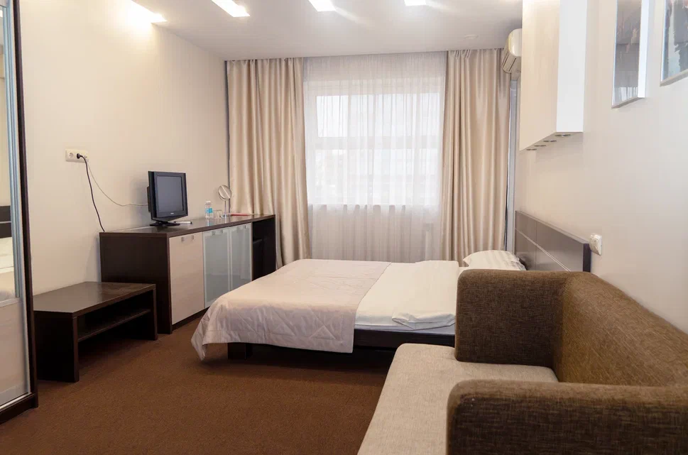 Просторный номер с санузлом, мебелью, кондиционером, холодильником, телевизором